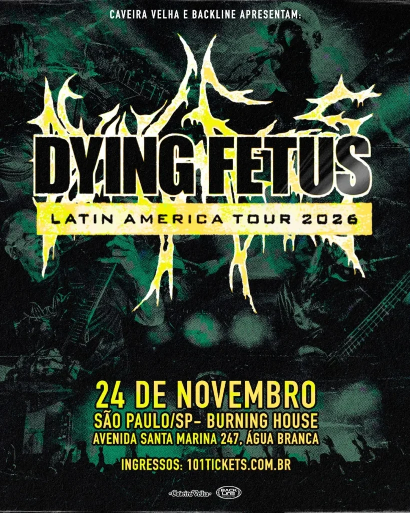 A banda norte-americana Dying Fetus confirmou retorno ao Brasil com uma apresentação única em São Paulo. O show acontece no dia 24 de novembro de 2026, no Burning House.
