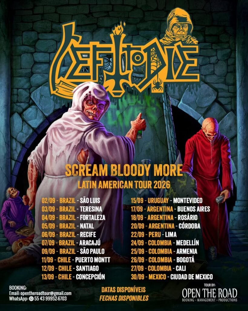 A banda norte-americana Left to Die confirmou sua passagem pela América Latina em setembro de 2026 com a turnê “Scream Bloody More – Latin American Tour”, dedicada à execução integral do álbum Scream Bloody Gore, considerado um dos maiores clássicos da história do death metal.