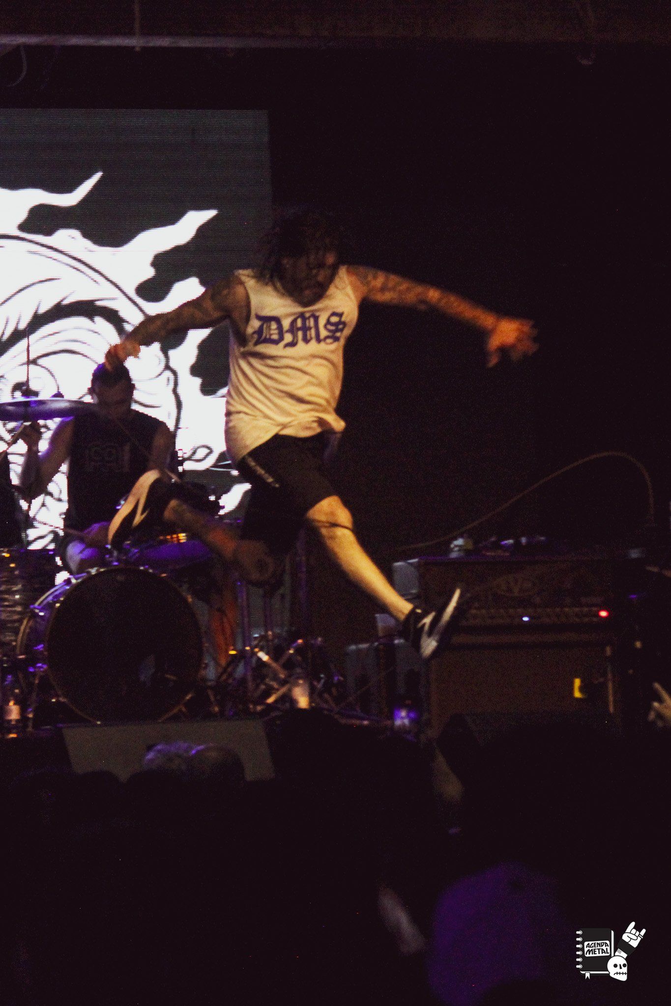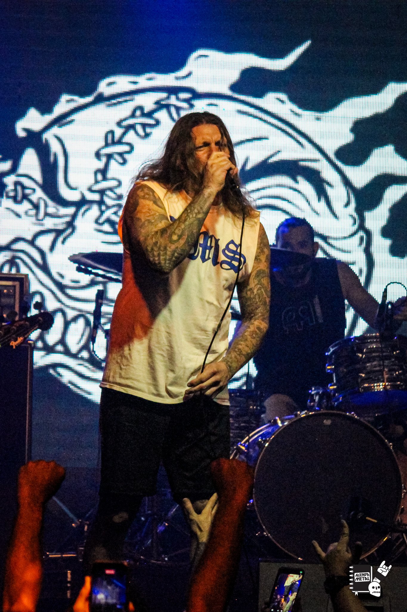 O Freddy Cricien é um monstro no palco e tem um domínio bizarro. Já começaram com “Nuestra Familia” e o mosh abriu um buraco no meio da pista. É impressionante como o som deles é seco, sem frescura, é groove e porrada o tempo todo.