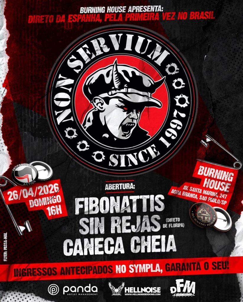 A banda espanhola Non Servium, um dos nomes mais conhecidos do streetpunk europeu, se apresentará pela primeira vez no Brasil. O show acontece no dia 26 de abril, na Burning House, em São Paulo, como parte da nova turnê latino-americana do grupo.