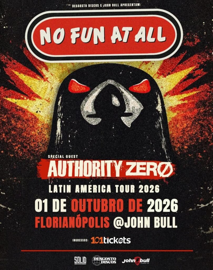 Venda: https://101tickets.com.br/events/details/No-Fun-At-All-e-Authority-Zero-em-Florianopolis