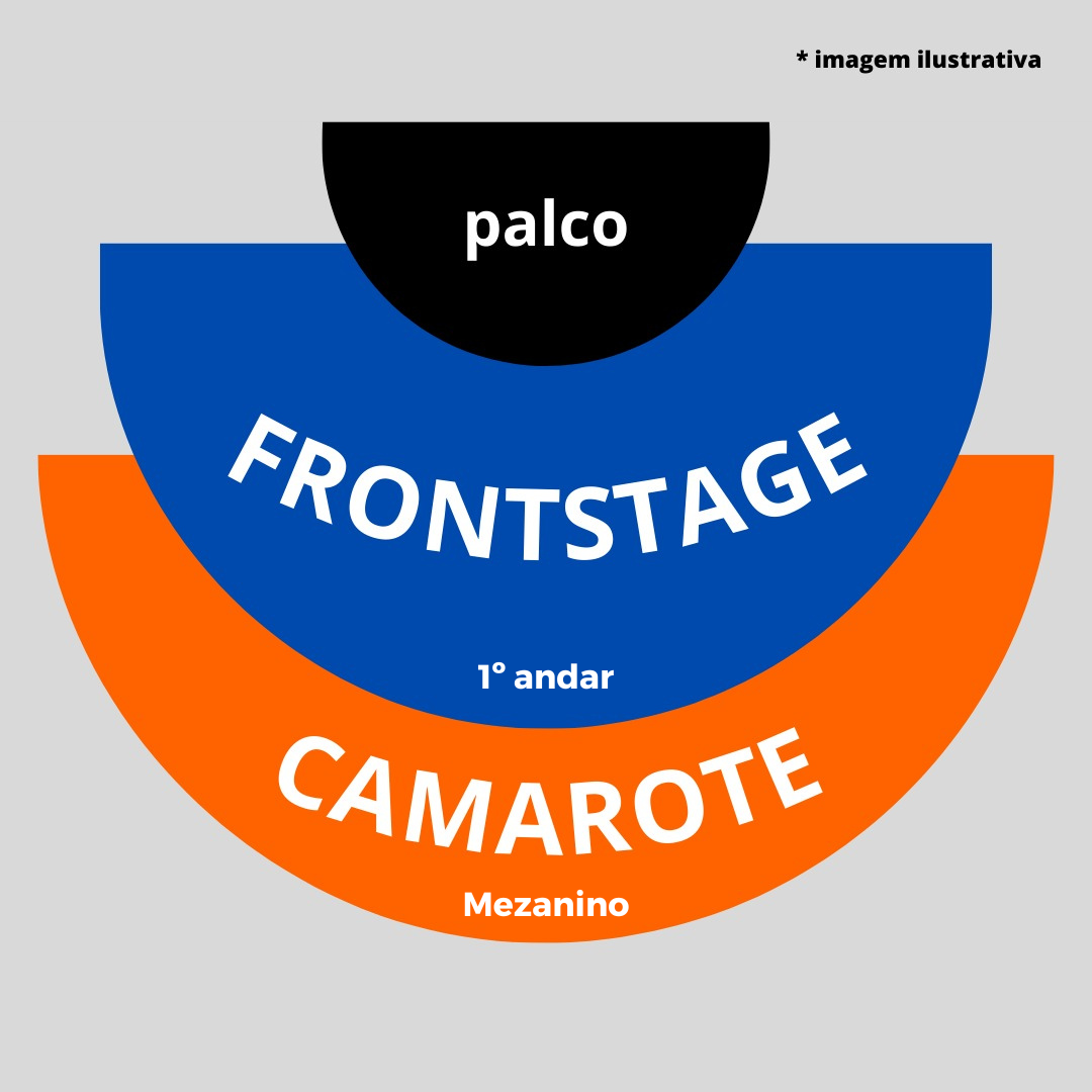 Lote 1 – Frontstage Promocional (obrigatória a doação de 1k de alimento não perecível): R$ 90,00 + taxa